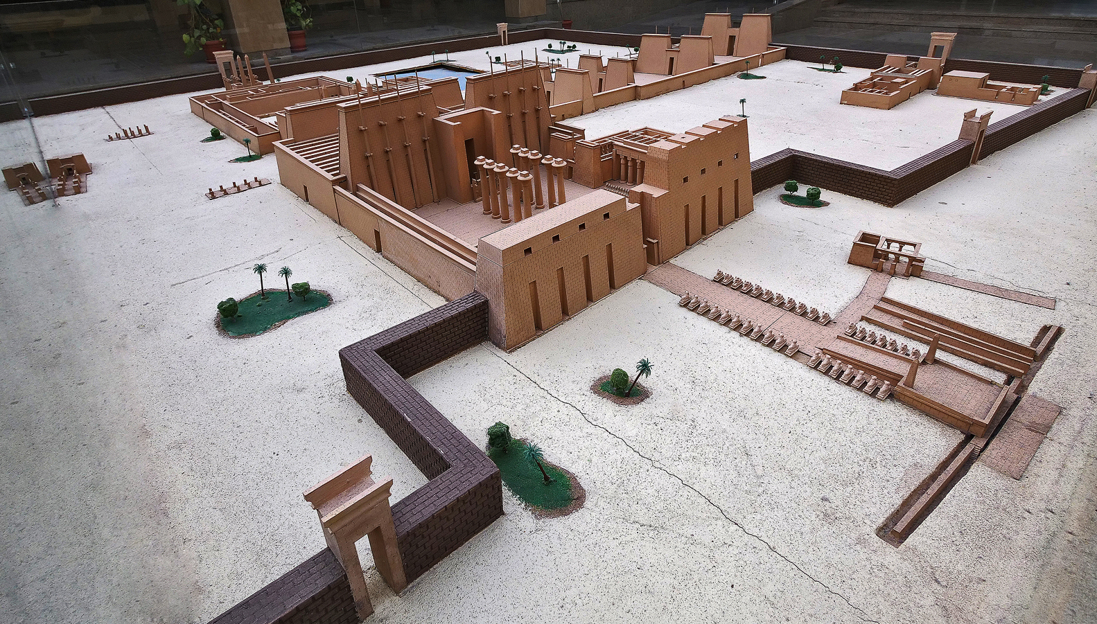 A model of the Karnak Temple at its maximum expansion with seven pylons, a roofless hypostyle hall, the water tank and some additional temples on the compound.