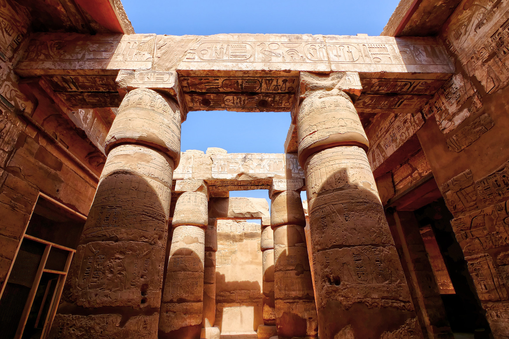 Its hypostyle hall (an unroofed area made of multiple colossal pillars) and the giant, hieroglyphic-encrusted papyrus columns leading up to the entrance are outstanding, especially as they were built at a time when people in most of the other places of the world didn’t even know how to make little houses.