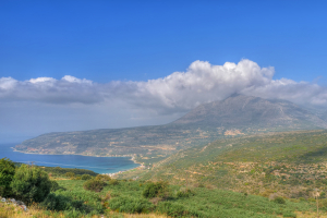 Above the village rises Sangias Oros (1214m). On the way there is another chapel with the name Profitis Ilias. From the chapel there are wonderful views of the Southern Mani and of the Messinian Bay and Taygetos mountains to the north.