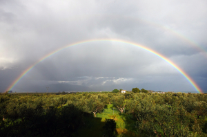 - A rainbow over Kalamata with the Taygetos mountains hidden in the clouds